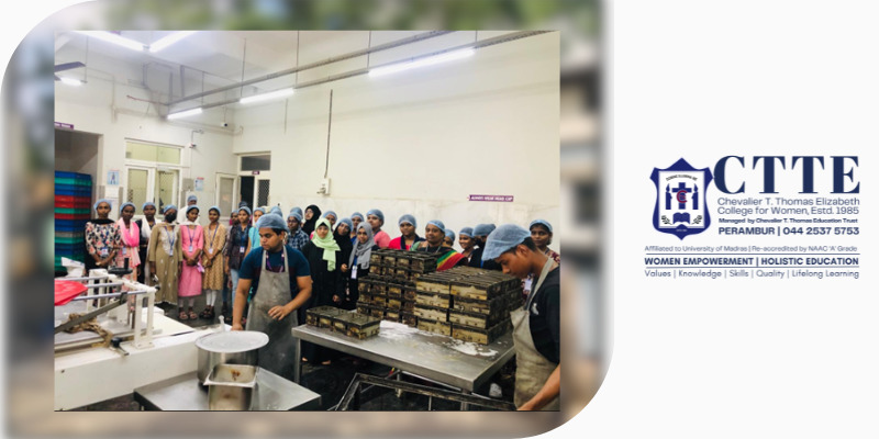The Industrial Visit to Ajantha Bakery Unit, Madhavaram, was conducted on 24 January 2025 from 10:00 a.m. to 12:00 p.m. in an offline mode. A total of sixty students from the Department of Accounting and Finance participated in this visit, which was designed to provide them with exposure to the operational and production processes of a commercial bakery unit.