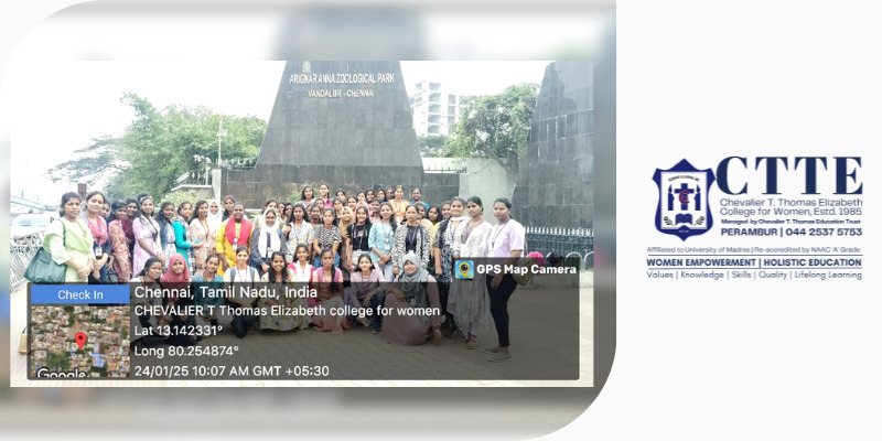 The Department of Accounting and Finance organised an Environmental Studies field visit to the Arignar Anna Zoological Park, Vandalur, on 24 January 2025. A total of fifty-seven students participated in the educational trip, which commenced at 8:30 AM and extended until 2:30 PM. The visit was intended to provide students with practical exposure to biodiversity and wildlife, thereby complementing their theoretical understanding with real-world observation.