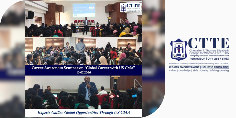 The Department of Accounting & Finance, Chevalier T. Thomas Elizabeth College for Women, organised a Career Awareness Seminar on “Global Career with US CMA” on 10 February 2026. The programme aimed to create awareness among students about global opportunities in management accounting and the advantages of pursuing the US CMA qualification.